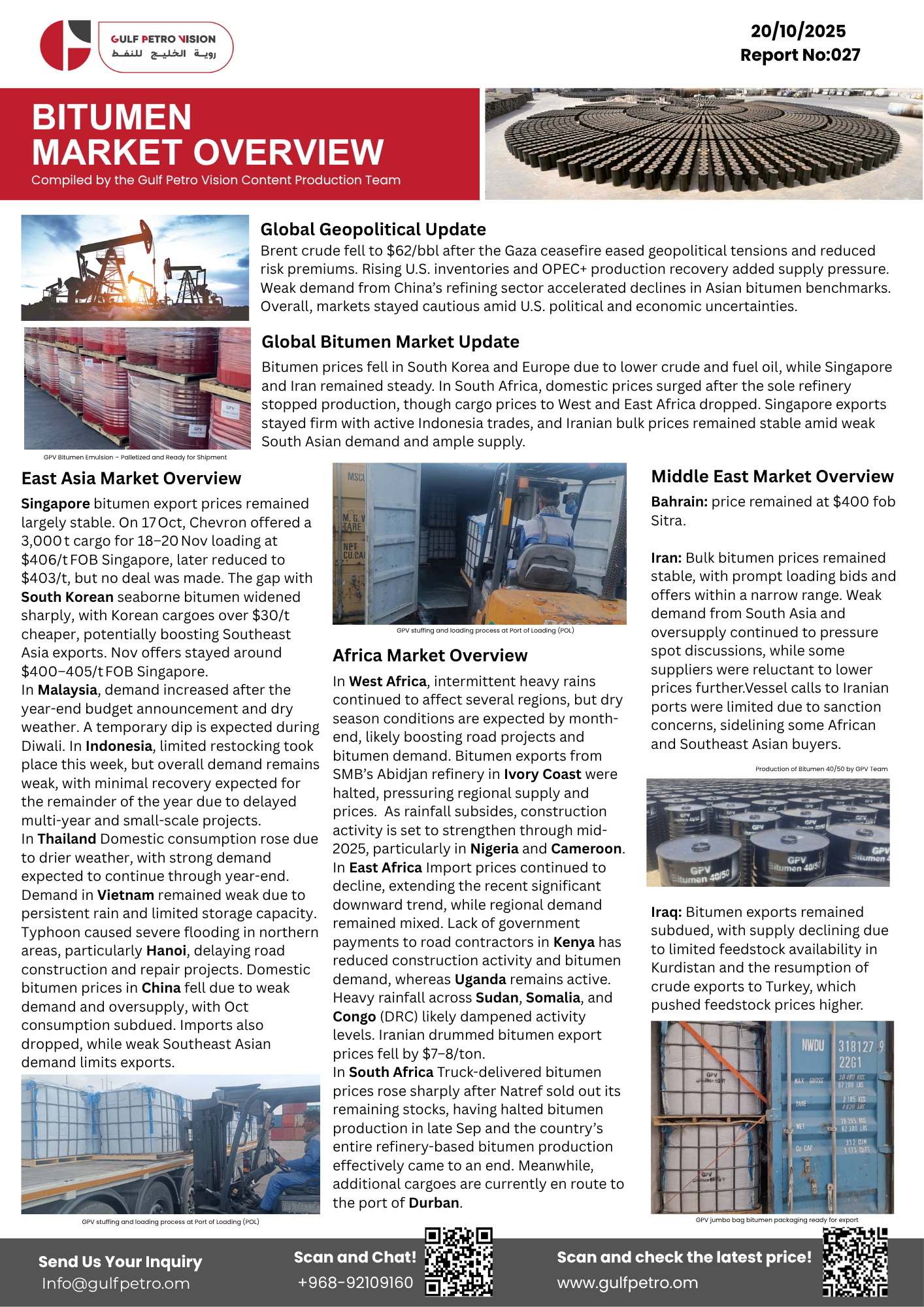 Bitumen Market Overview 20 October 2025